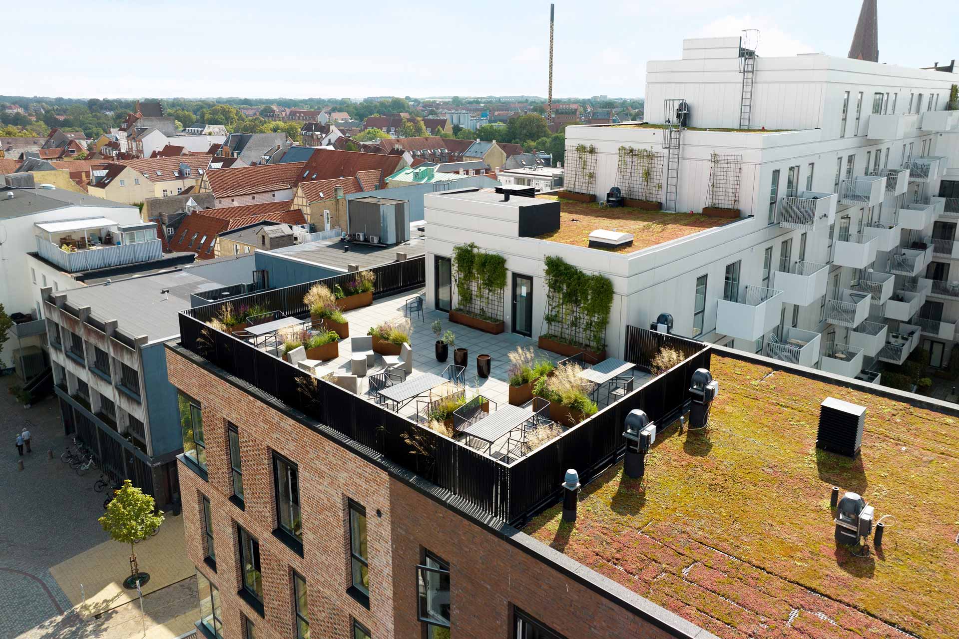 Arkitekterne fra Arkitema har særligt haft fokus på livskvalitet, langtidsholdbare løsninger og et imødekommende udtryk, der skaber stærk sammenhæng med byrummene omkring Albani Torv.